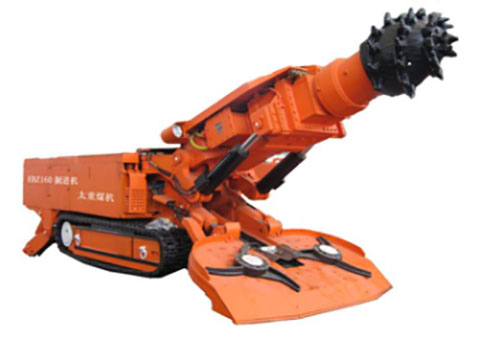該機組適用于煤巷掘進,液壓系統(tǒng)為變量系統(tǒng),配有先導(dǎo)比例操作閥,操作輕便,中雙鏈刮板式運輸機構(gòu),截割臂不伸縮,具有內(nèi)外噴霧系統(tǒng),行走減速器與馬達集成安裝根據(jù)用戶需要可配裝超前臨時支護,方便作業(yè)。