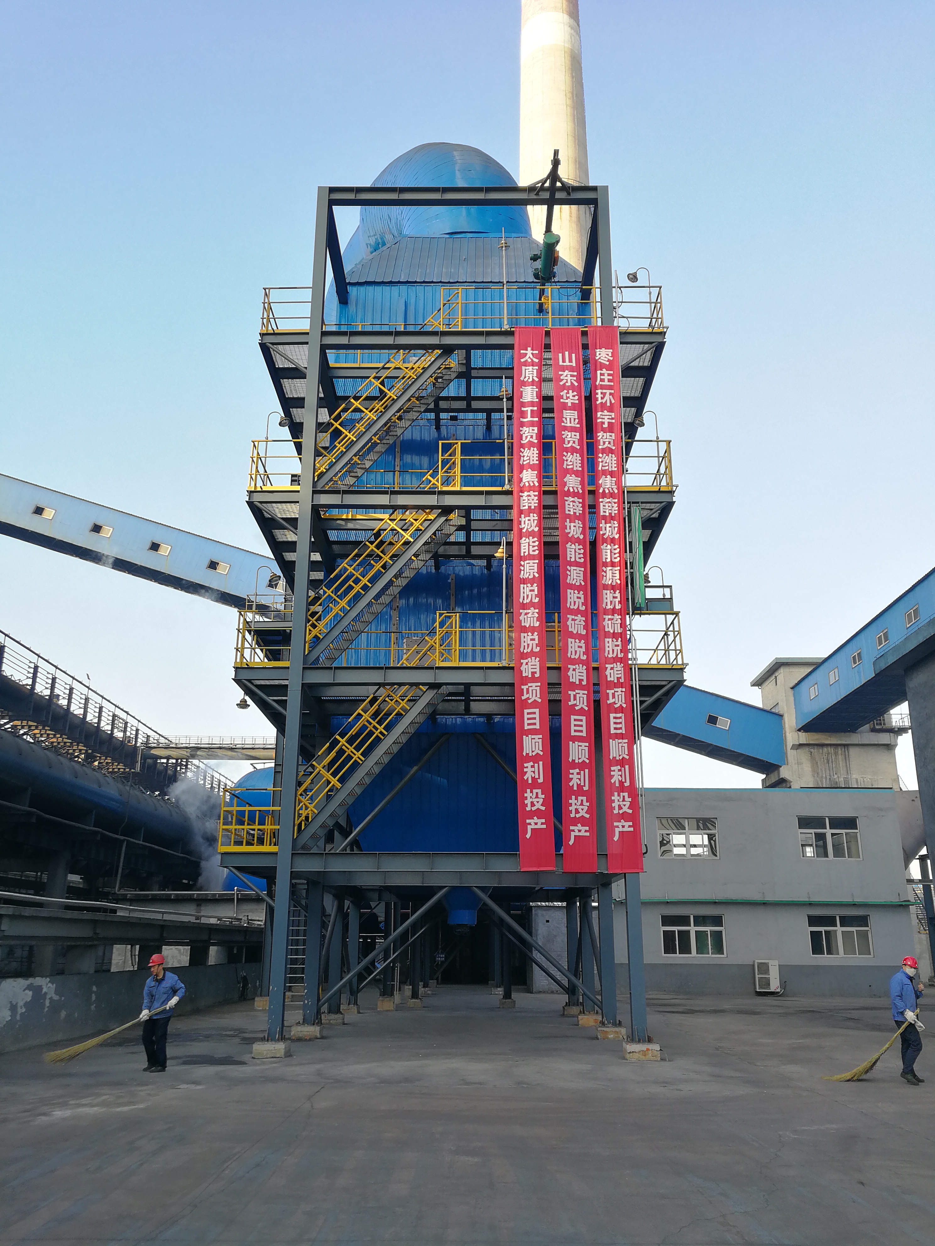 焦爐煙道氣脫硫脫硝工藝主要是為了降低煙氣中的氮氧化物、SO2及顆粒物含量,使煙氣排放達到國家及地方相關(guān)標準。焦爐煙道氣脫硫脫硝工藝主要由煙氣系統(tǒng)、脫硫單元、脫硝單元、風機機組、氨分解單元以及氨水站等組成。從焦爐總煙道引出煙氣,通過氨噴射器,氨噴射器對濃氨水進行霧化并噴入煙氣管道內(nèi),混有NH3的煙氣通過脫硫器,并在脫硫催化劑作用下與SO2進行反應(yīng)生成硫酸銨,脫硫后的煙氣通過管道送往脫硝SCR反應(yīng)器中。濃氨水經(jīng)過噴霧分布器霧化后輸送至SCR反應(yīng)器。煙氣中的NOx在脫硝催化劑的作用下,與氨發(fā)生反應(yīng)生成N2和H2O。凈化后的煙氣送往廠區(qū)原有余熱鍋爐單元。為保證排放煙氣中的氨含量達到排放標準及規(guī)范,在余熱鍋爐單元后設(shè)置氨分解器,內(nèi)部填加氨分解催化劑,將過量的NH3分解為N2和H2O,凈化后的煙氣經(jīng)煙囪排放。