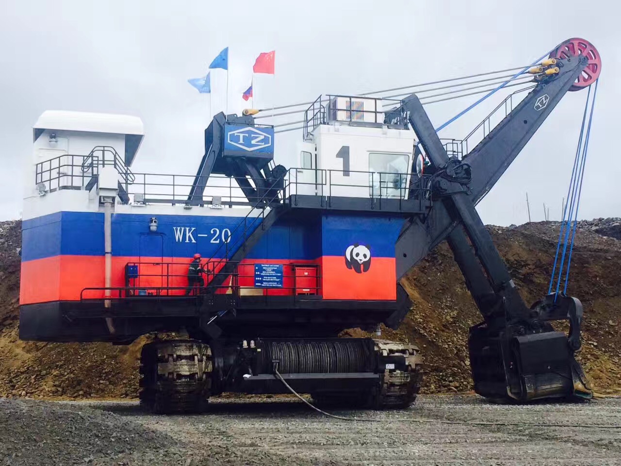 WK-20礦用挖掘機(jī)與108-220t礦用汽車配套使用,可適用于千萬(wàn)噸級(jí)大型露天煤礦、鐵礦及有色金屬礦山的剝離和采裝作業(yè)。