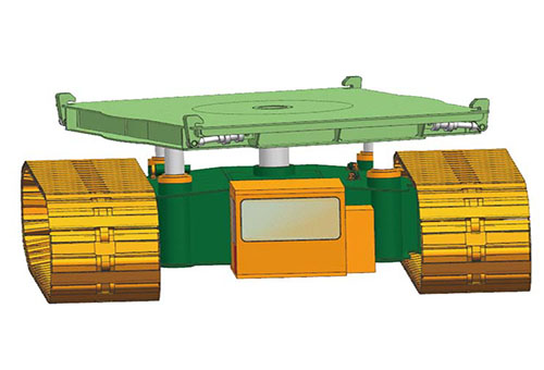履帶運(yùn)輸車用于露天礦半移動(dòng)破碎站、膠帶機(jī)頭站和采場變電站等大件定期的轉(zhuǎn)場移設(shè)。履帶車上布置有傾斜儀,隨時(shí)顯示支撐平臺(tái)的傾斜度。履帶車在坡道運(yùn)輸時(shí),可及時(shí)調(diào)整上部平臺(tái),使其保持在規(guī)定的水平范圍內(nèi),保證被運(yùn)輸物件的重心處在安全范圍內(nèi)。