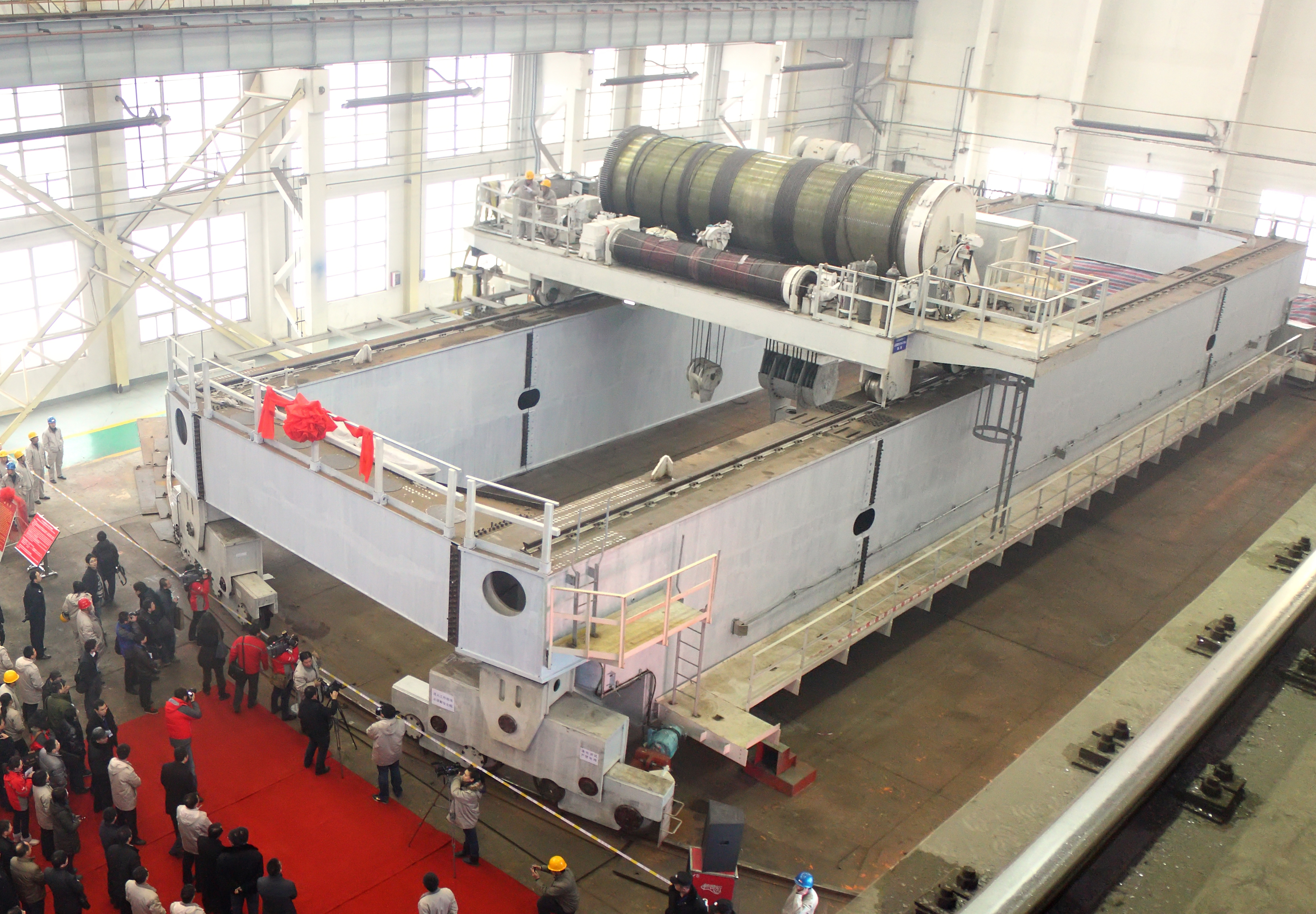 核島環(huán)行起重機(jī),主要為核電站反應(yīng)堆廠房內(nèi)的重型設(shè)備提供安裝、維修服務(wù),以及反應(yīng)堆換料提供吊運(yùn)服務(wù)。大車車輪沿著圓柱形廠房上部的環(huán)形軌道運(yùn)行,簡稱核環(huán)吊。太重已經(jīng)為秦山、山東海陽、田灣、石島灣等核電站提供了10余臺套核島環(huán)行起重機(jī)。