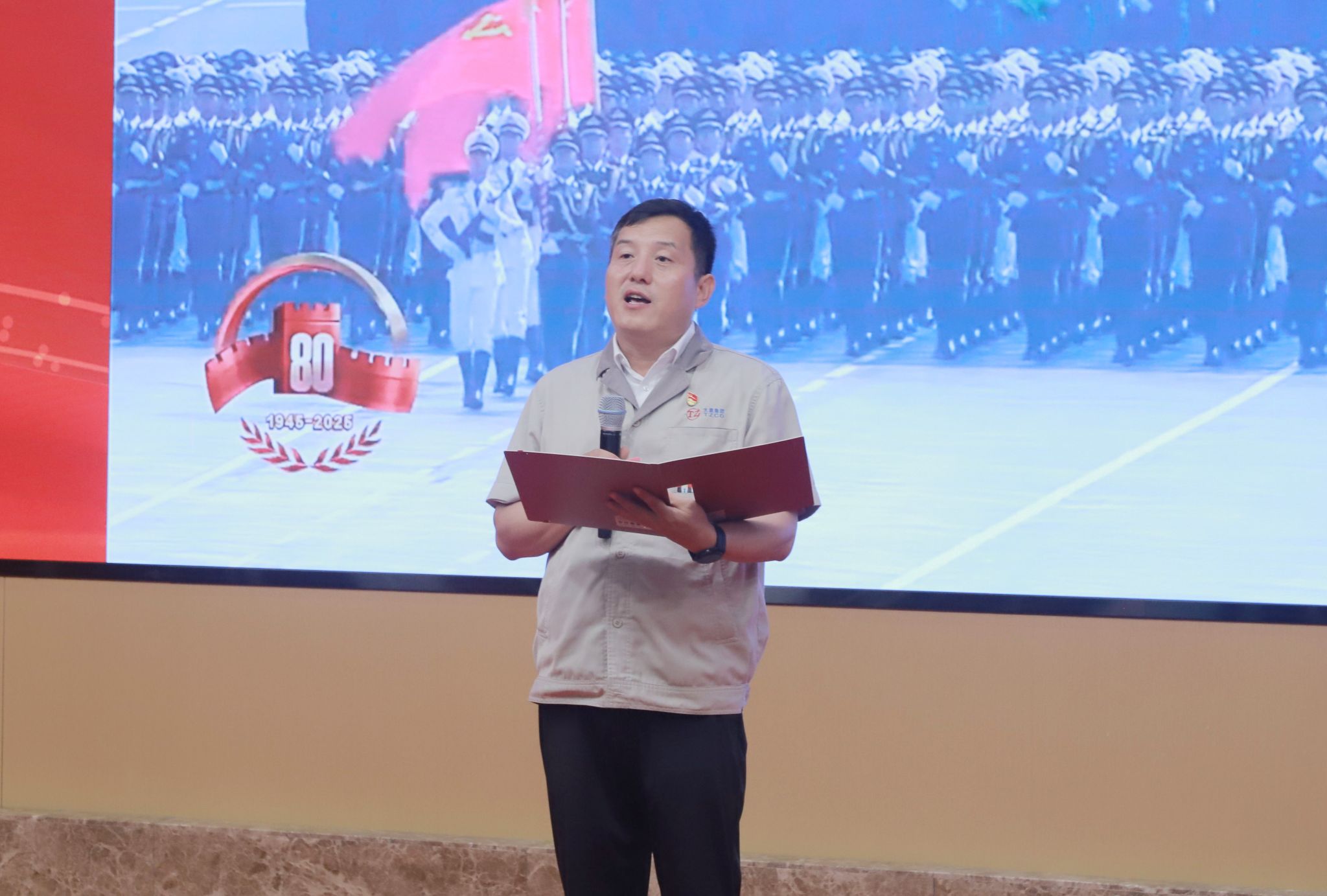 隨著九三閱兵視頻片段的播放,樊志勤走上宣講臺(tái),用 “感謝、感動(dòng)、震撼、責(zé)任” 四個(gè)關(guān)鍵詞,將自己的觀禮經(jīng)歷娓娓道來?!爱?dāng)坦克方隊(duì)走過時(shí),感受到的是國家軍事力量的強(qiáng)大,想到的是我們太重人為國家重點(diǎn)工程研制的大型裝備,作為一名太重人也能為國防建設(shè)出一份力,我驕傲!”他哽咽著講述觀禮時(shí)的感動(dòng),每一個(gè)細(xì)節(jié)都讓現(xiàn)場職工深受觸動(dòng)?!拔乙獛е@份感動(dòng),在自身崗位上鑄就更多國之重器,為太重75周年獻(xiàn)禮,為民族復(fù)興添磚加瓦!”話語未落,全場已響起雷鳴般的掌聲。
