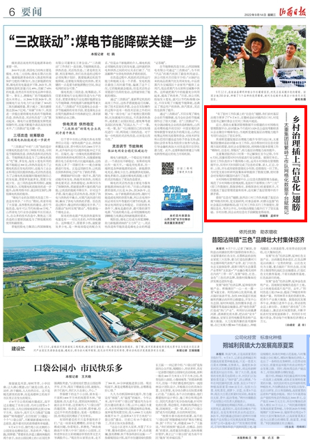 今日山西日報以《鄉(xiāng)村治理插上“信息化”翅膀》為題,報道了太重集團(tuán)積極履行國有企業(yè)社會責(zé)任,依托企業(yè)管理經(jīng)驗(yàn),將網(wǎng)格化服務(wù)管理工作“精細(xì)化、信息化、智能化”,助力基層治理能力高效提升,讓鄉(xiāng)村治理,因企業(yè)信息化手段賦能變得高效。