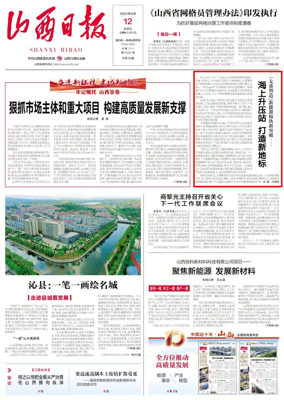 8月12日,山西日?qǐng)?bào)頭版以《“太重智造”新能源板塊新突破——海上升壓站 打造新地標(biāo)》為題,對(duì)太重集團(tuán)生產(chǎn)制造的海上升壓站進(jìn)行了全面報(bào)道。太重集團(tuán)作為全省風(fēng)電裝備制造的“鏈主”企業(yè),正在按照資源開發(fā)、設(shè)計(jì)制造、服務(wù)運(yùn)營(yíng)、海陸一體的發(fā)展理念,抓住機(jī)遇、乘勢(shì)而上,為制造業(yè)高質(zhì)量發(fā)展、提升產(chǎn)業(yè)鏈供應(yīng)鏈現(xiàn)代化水平發(fā)揮更積極的作用。