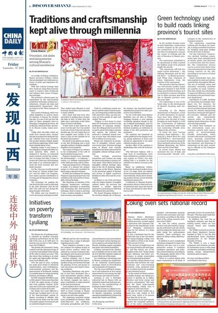 今天,《中國日報》全英文刊發(fā)文章介紹太重集團的7.25米搗固焦爐設備。