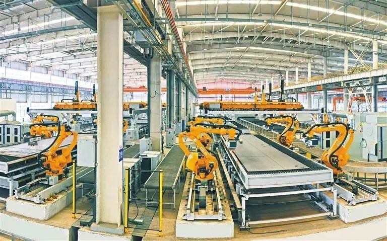 走進太重智能高端裝備產業(yè)園區(qū),自動機械臂“徒手”完成打孔、塑形、剪裁等步驟,一塊塊鋼板被自動加工成形狀、薄厚各異的產品用料,自動導引搬運車穿梭在生產線與堆放區(qū)之間,將加工好的成品原料件按需運往下道工序……這間由機器包辦的下料車間,即使黑著燈,照樣能生產。