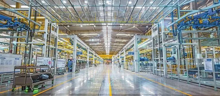 太重智能高端液壓挖掘機產業(yè)園裝配車間,上千個零部件通過空中走廊和地面運輸機器人匯聚,平均每4分24秒就能裝配完成一臺挖掘機。牛帥攝(中經視覺)