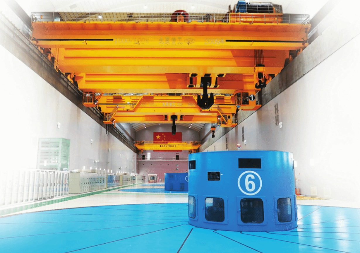 踏入這座智能化水平位居世界前列的水電站主廠房,映入眼簾的是震撼的工業(yè)圖景,耳中持續(xù)回響側(cè)排電箱發(fā)出的規(guī)律嗡鳴。廠房上空數(shù)十米處,太重研制的兩臺(tái)1000t橋式起重機(jī)正有條不紊地吊起巨大構(gòu)件緩緩掠過高空,精準(zhǔn)地運(yùn)往指定地點(diǎn)。沒有想象中的劇烈震顫與遲緩操作,所有動(dòng)作都流暢而精準(zhǔn),令人贊嘆。