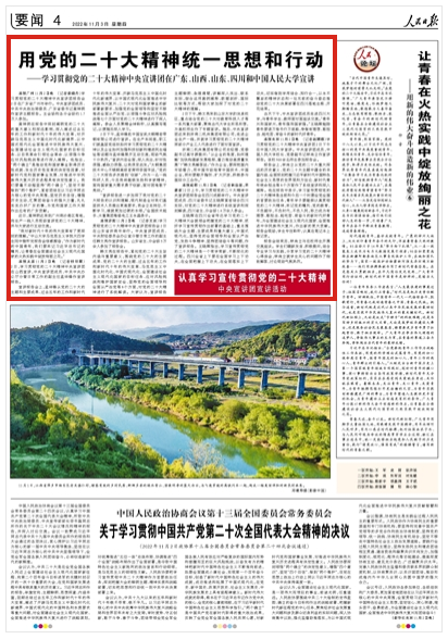 人民日?qǐng)?bào)刊發(fā)的《用黨的二十大精神統(tǒng)一思想和行動(dòng)——學(xué)習(xí)貫徹黨的二十大精神中央宣講團(tuán)在廣東、山西、山東、四川和中國(guó)人民大學(xué)宣講》文章,對(duì)公司職工王永晶進(jìn)行了采訪報(bào)道。