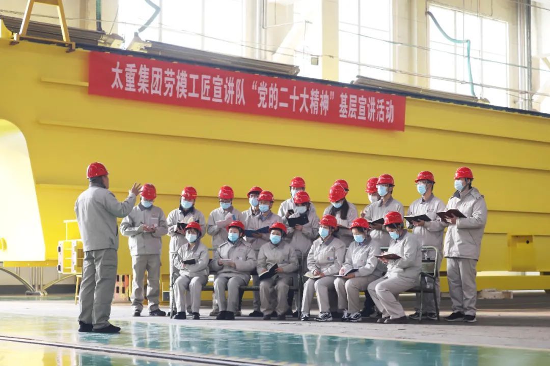 在黨和國家的培養(yǎng)下,太重集團集聚形成了一批勞模工匠先進典型群體。為充分發(fā)揮公司“勞模工匠”的集聚優(yōu)勢,太重專門組建了一支理論功底深、表達能力強、有宣講經(jīng)驗的人員組成了“勞模工匠”宣講隊。下一步,宣講隊將繼續(xù)深入基層一線、車間班組開展黨的二十大精神宣講活動,進一步發(fā)揮勞模工匠榜樣激勵和示范帶動作用,傳遞奮斗之聲,匯聚奮進之力,激勵廣大黨員干部職工感悟思想偉力,扛起使命擔當,為建設制造強國貢獻力量,推動黨的二十大精神在太重落地生根、開花結(jié)果。